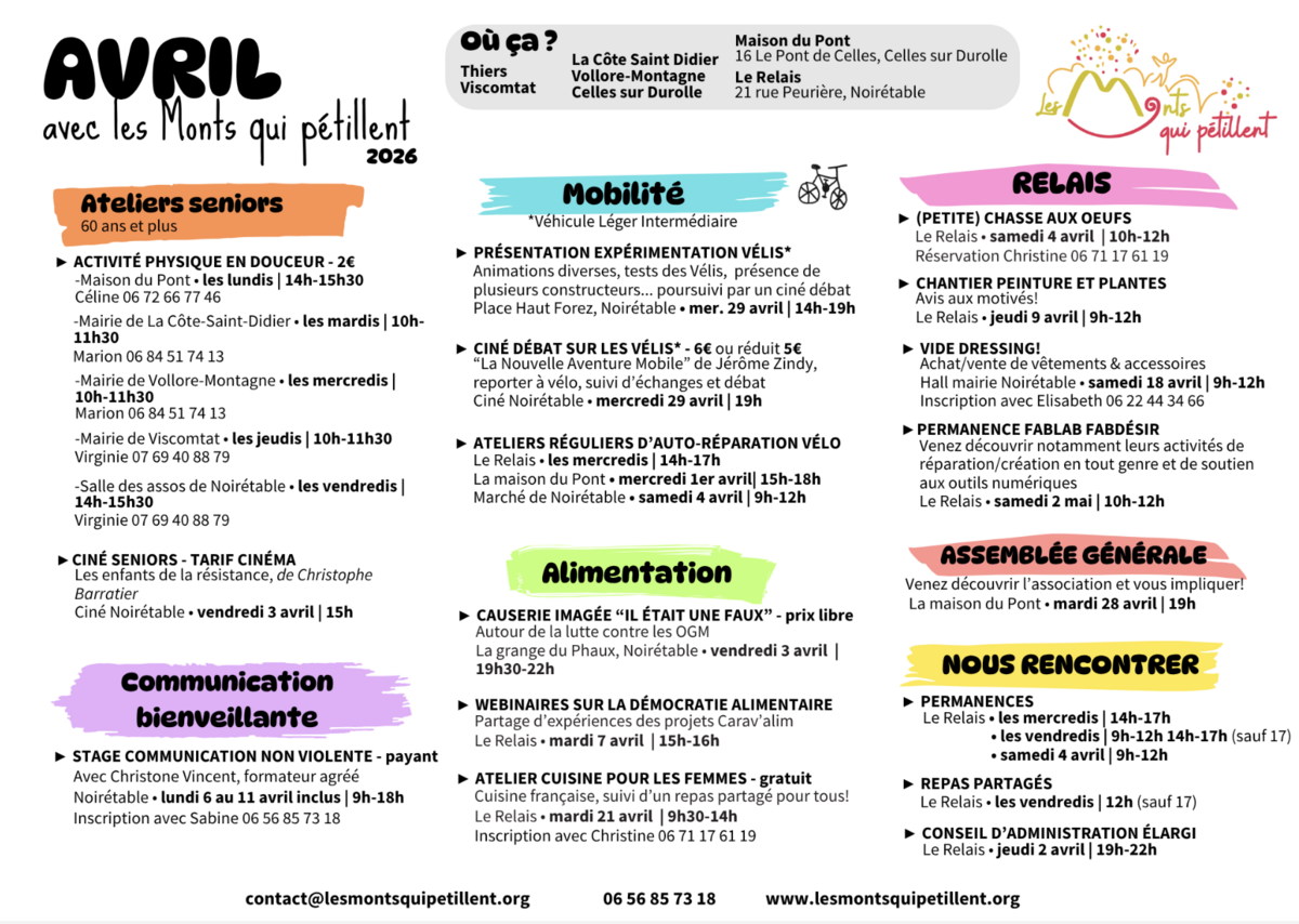 Agendas du mois d'AVRIL Rendez-vous en Forez