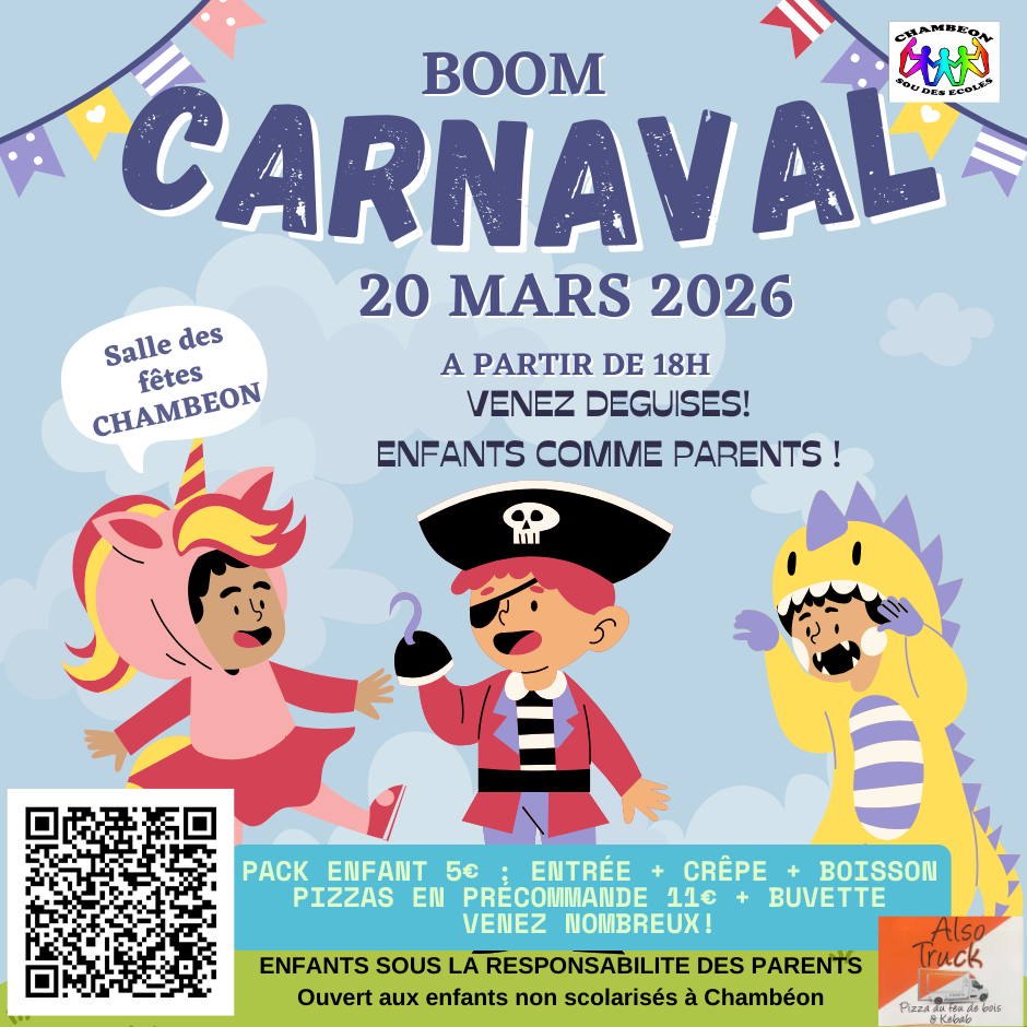 Boum du carnaval 2026 04/03/2026 Le sous des écoles vous invite à la boum du carnaval vendredi 20 mars 2026 Source : Mairie de Chambéon