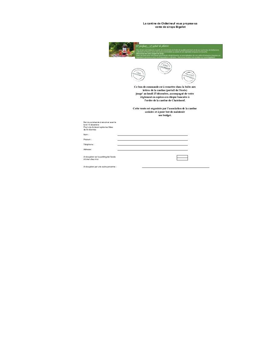 Vente sirops Bigallet