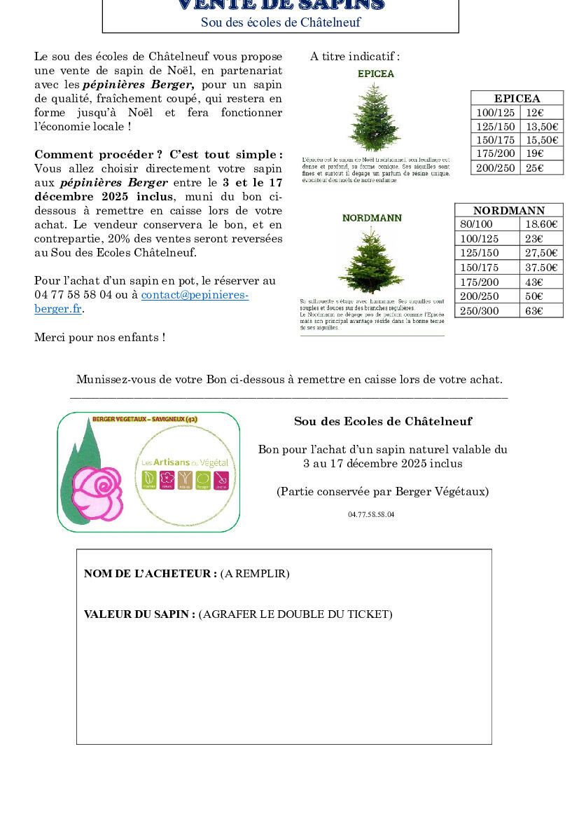 vente de sapins de Noël proposée par le Sou des écoles