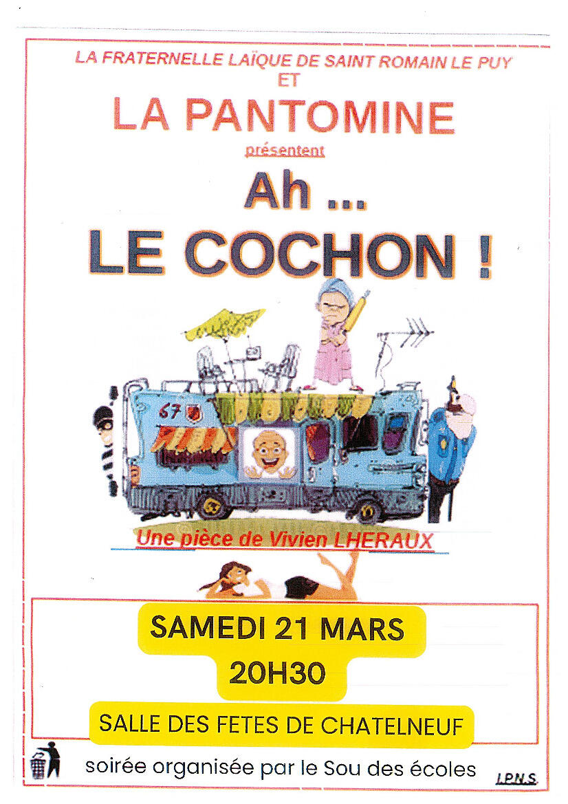 Le sou des écoles organise une soirée théâtre le samedi 21/03/2026 à 20h30 à la salle des fêtes