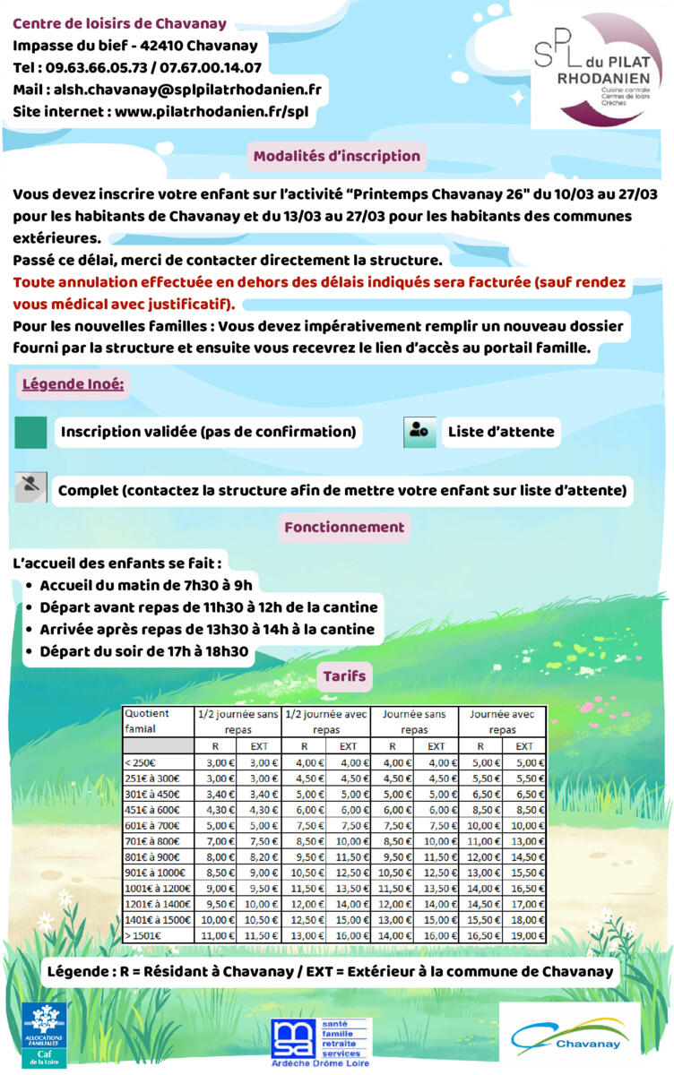 Centre de loisirs de Chavanay – Inscriptions Printemps