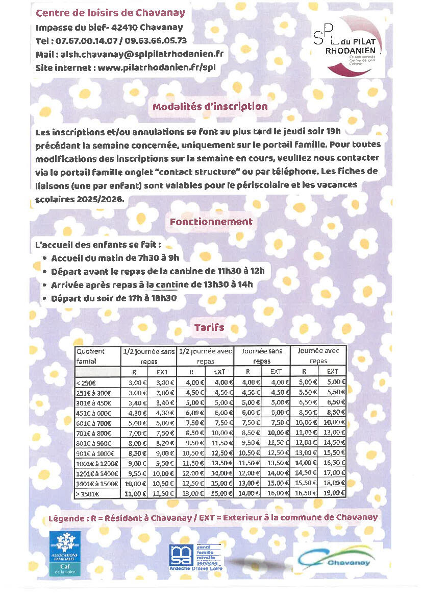 Centre de loisirs de Chavanay – Programmes des mercredis