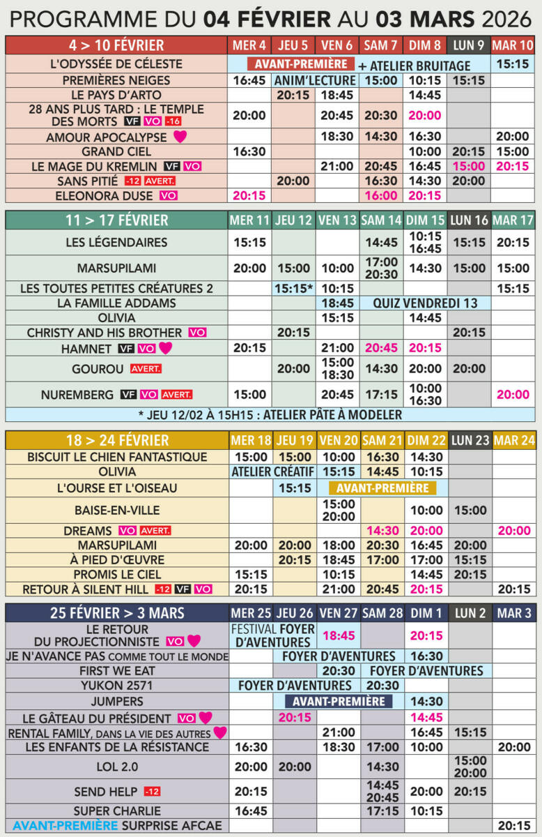 Foyer Cinéma : Nouveau programme du 04/02/26 au 03/03/26