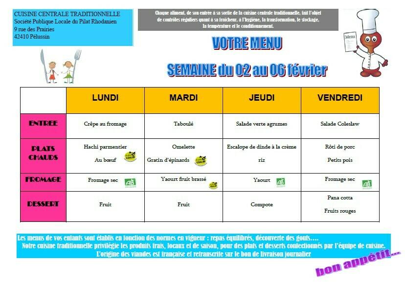Menus de la cantine