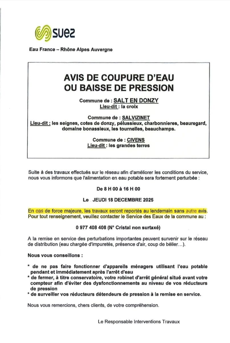 Coupure d’eau demain