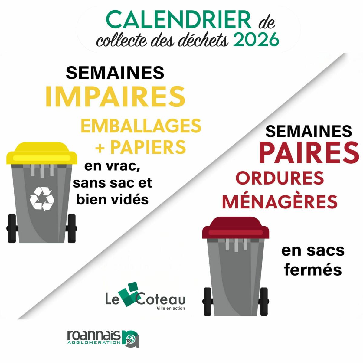 📅 Calendrier De Collecte Des Déchets 2026 05/01/2026 Le calendrier de collecte des déchets pour l’année 2026 est désormais disponible ! Retrouvez le sur 👉 lecoteau.fr