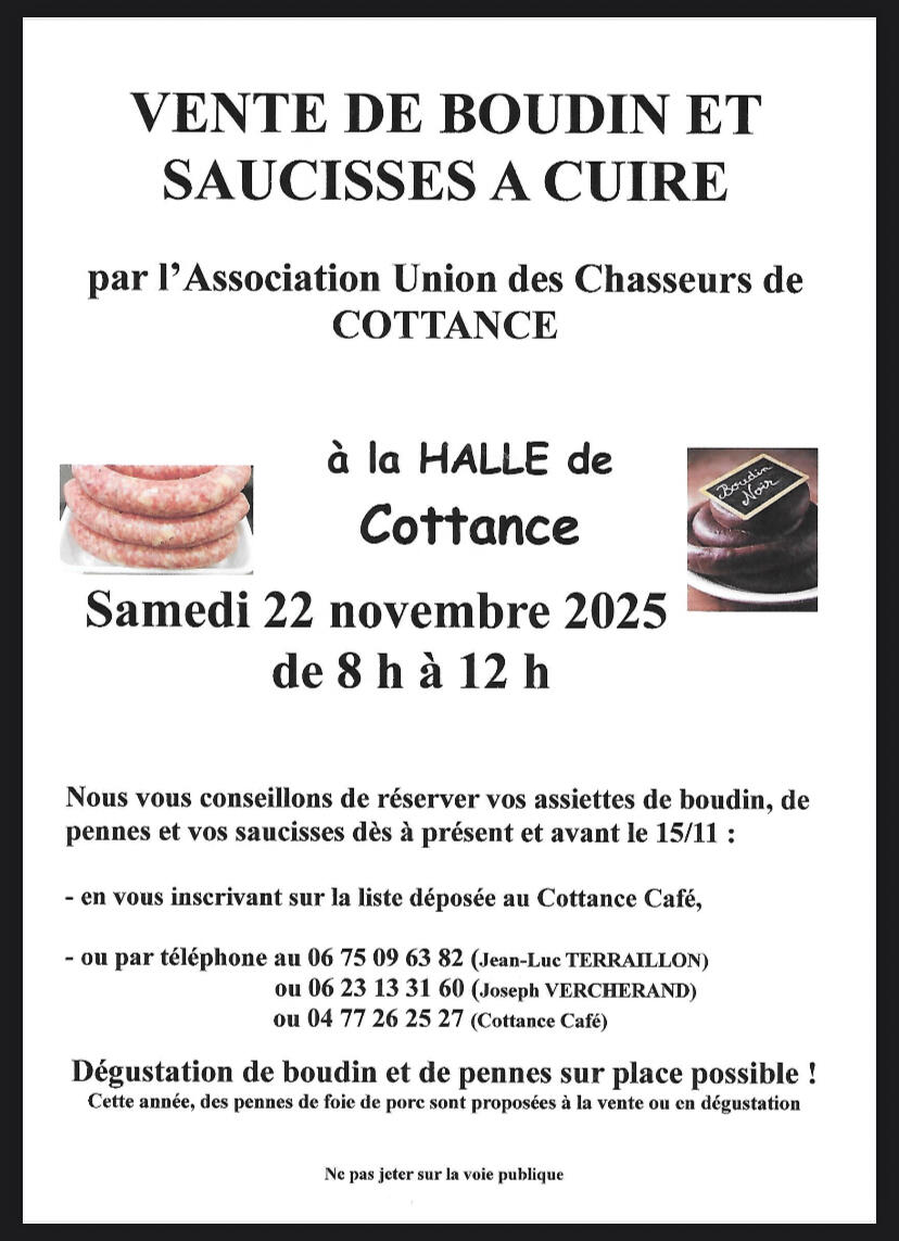 Vente de boudins / saucisses - 22/11/2025 à la Halle