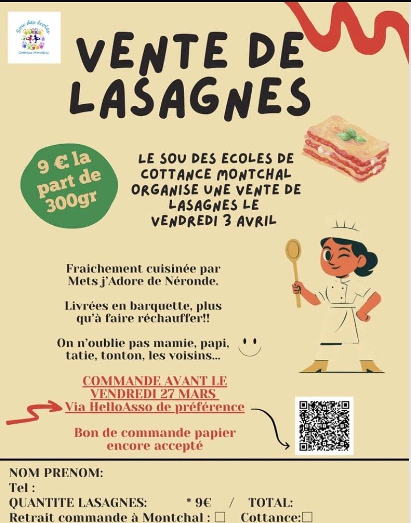 Vente de lasagnes du Sou des Ecoles