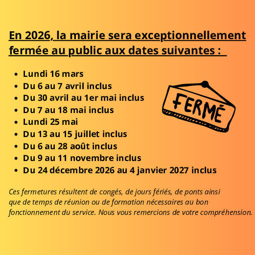 🚫 FERMETURE MAIRIE LE MARDI 7 AVRIL ❌