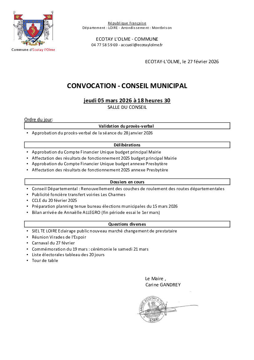 Toute l'actualité de Mairie d'Ecotay-L'Olme