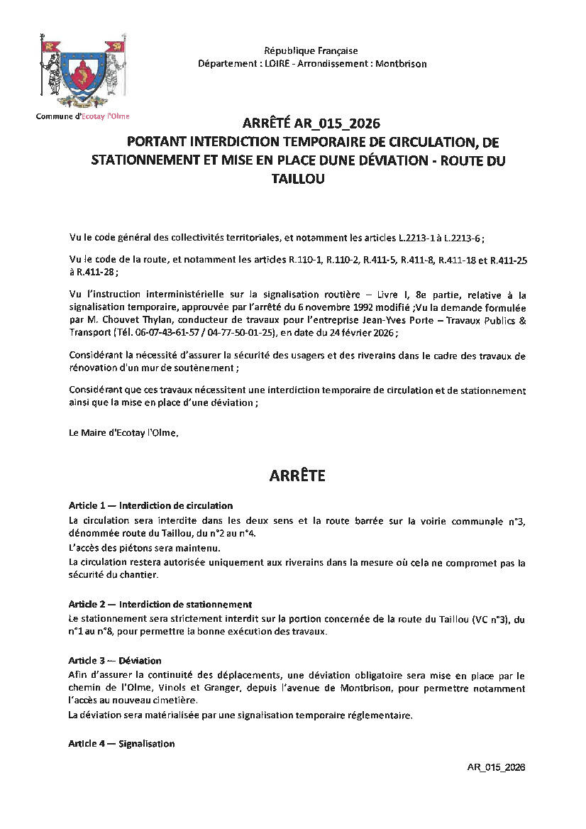 📢 INFO TRAVAUX – ROUTE DU TAILLOU