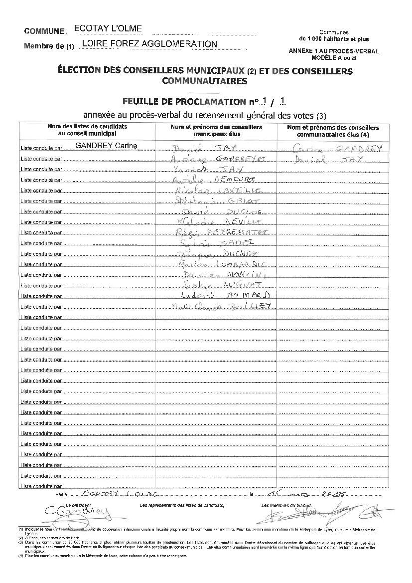 Le procÚs-verbal de proclamation des résultats des élections municipales est officiellement publié.