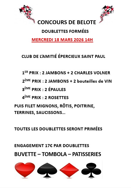/ CONCOURS DE BELOTE MERCREDI 18 MARS 14H