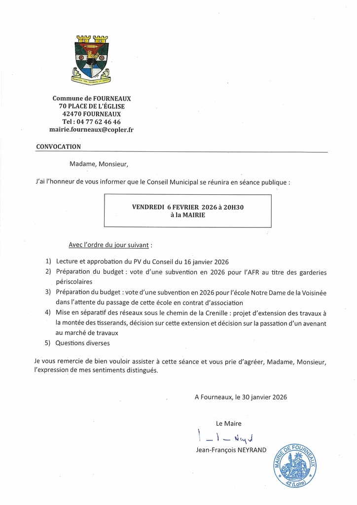 PROCHAIN CONSEIL MUNICIPAL VENDREDI 6 FEVRIER 2026 à 20H30