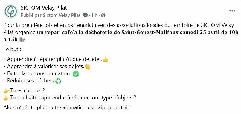Votre mairie / Actualités / Répar café - Déchèterie de Saint-Genest-Malifaux