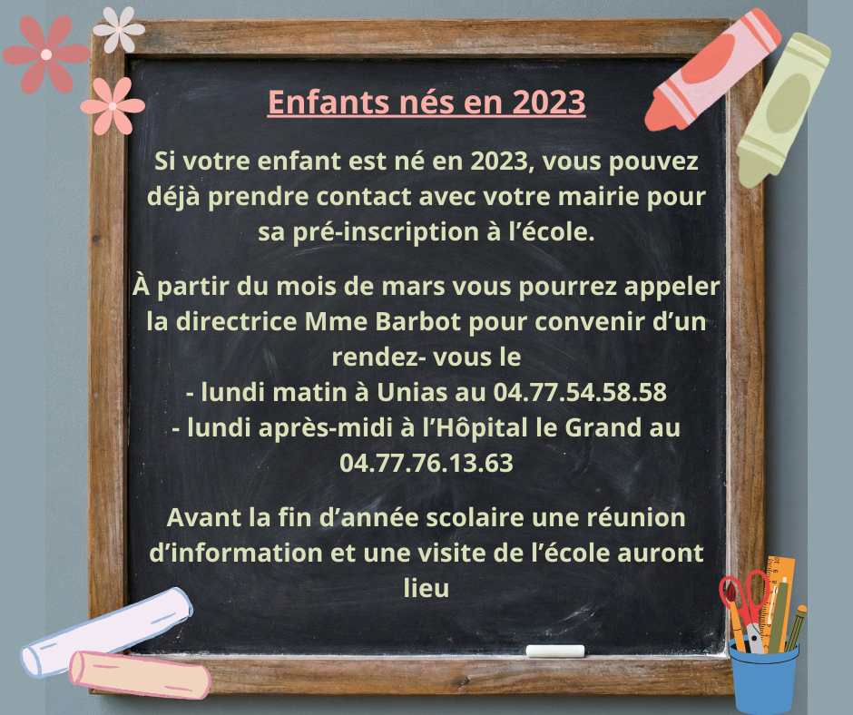 Si votre enfant est né en 2023, vous pouvez déjà prendre contact avec votre mairie pour sa pré-inscription à l’école.