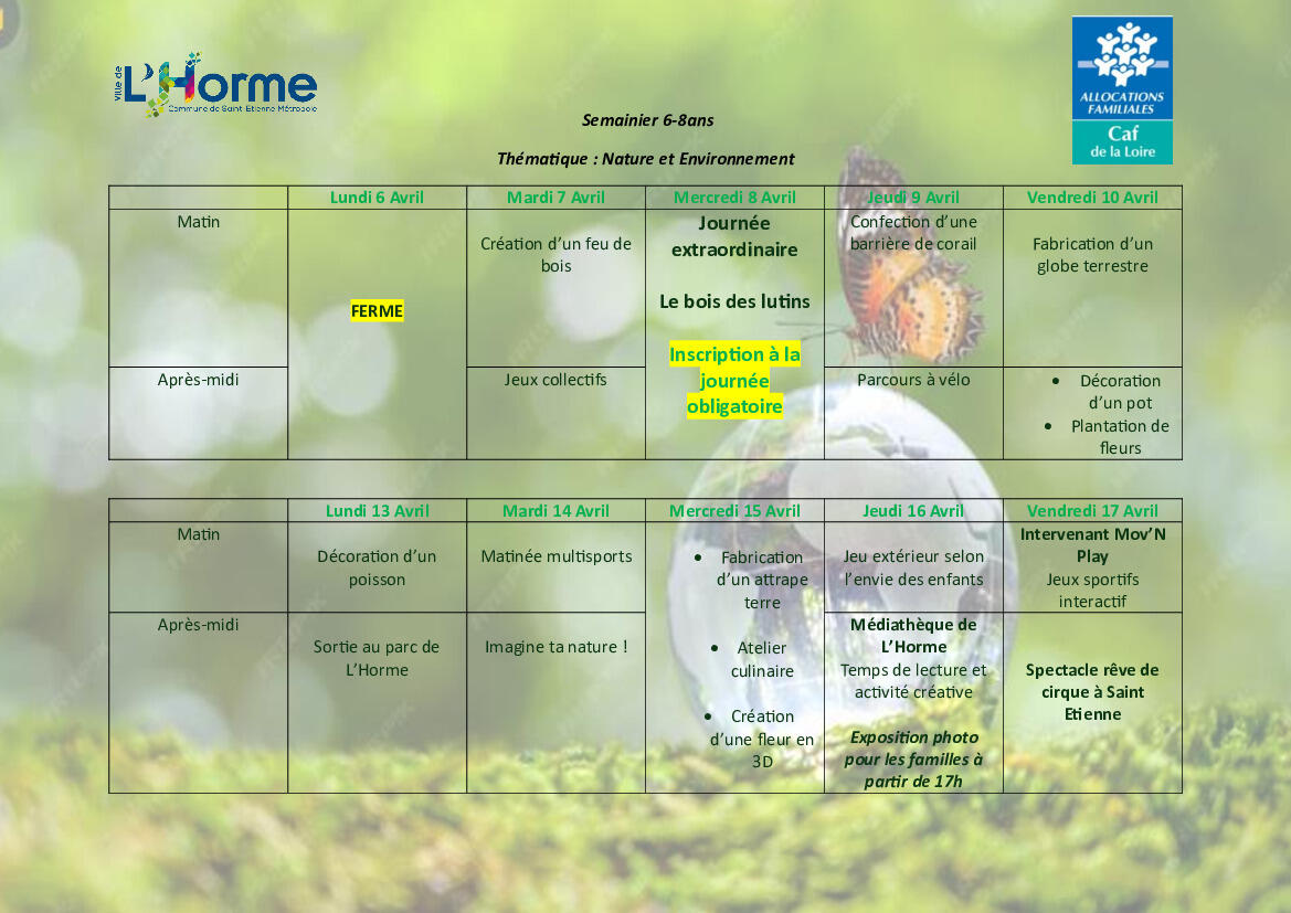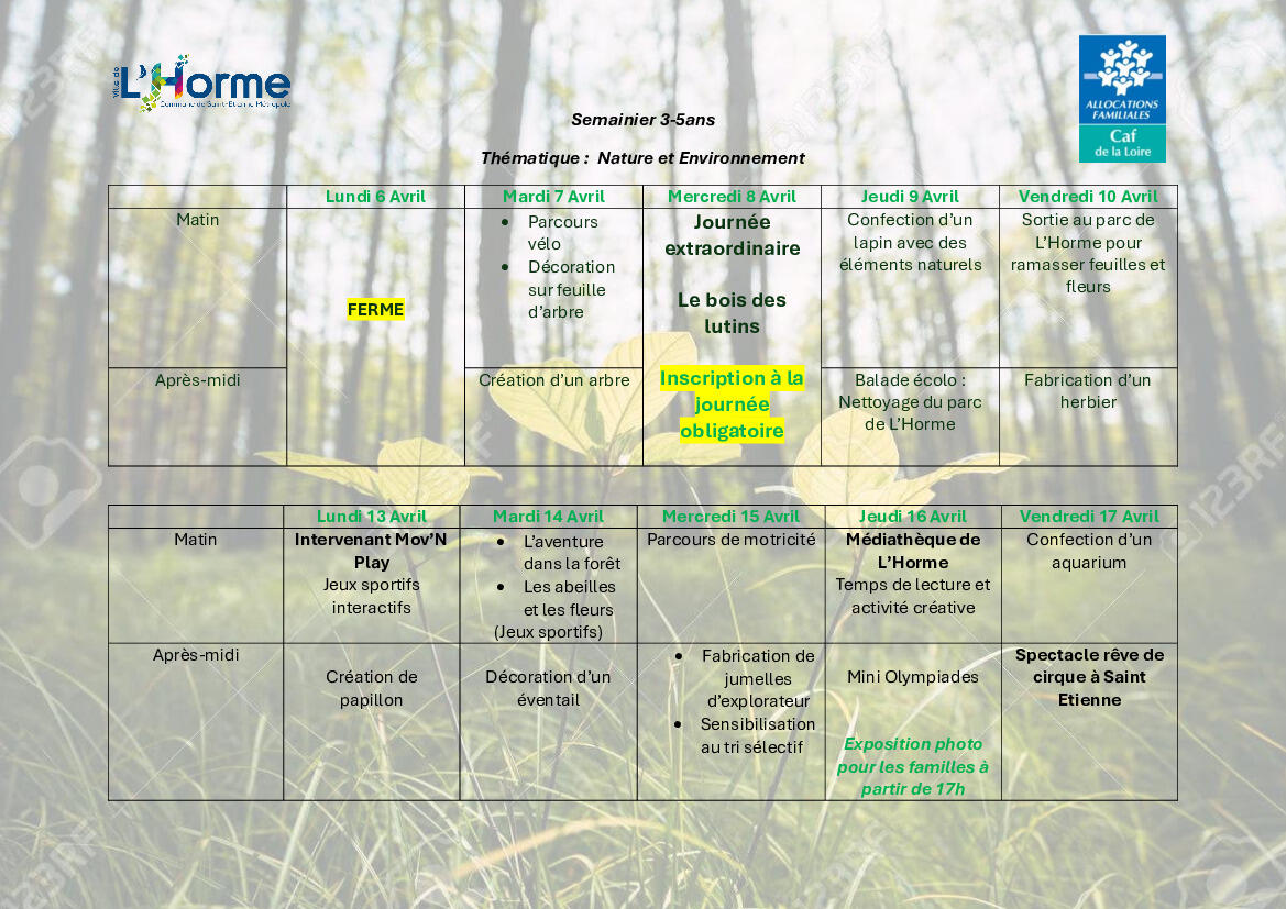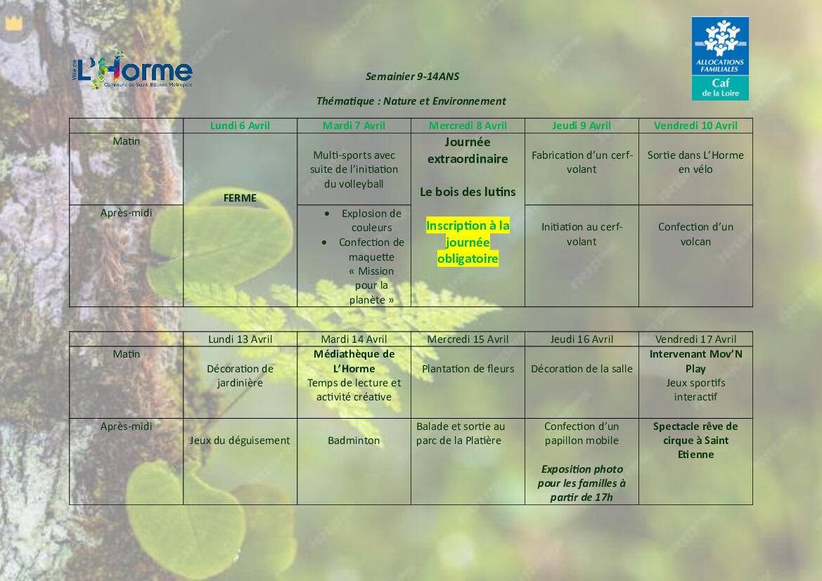 Pour les familles dont les enfants sont scolarisĂ©s Ă LâHorme, les inscriptions sâeffectuent du 11 au 18/03 :