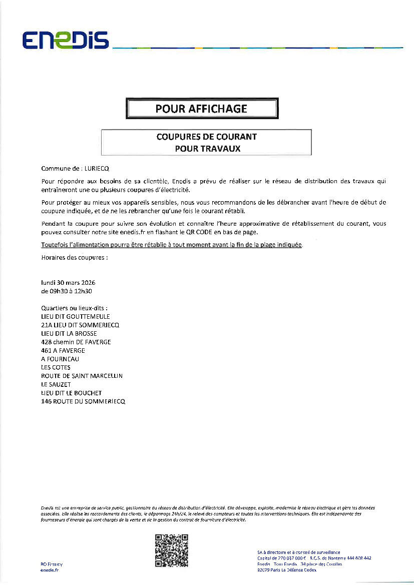Votre mairie / Actualités / Coupure de courant le 30 mars 2026
