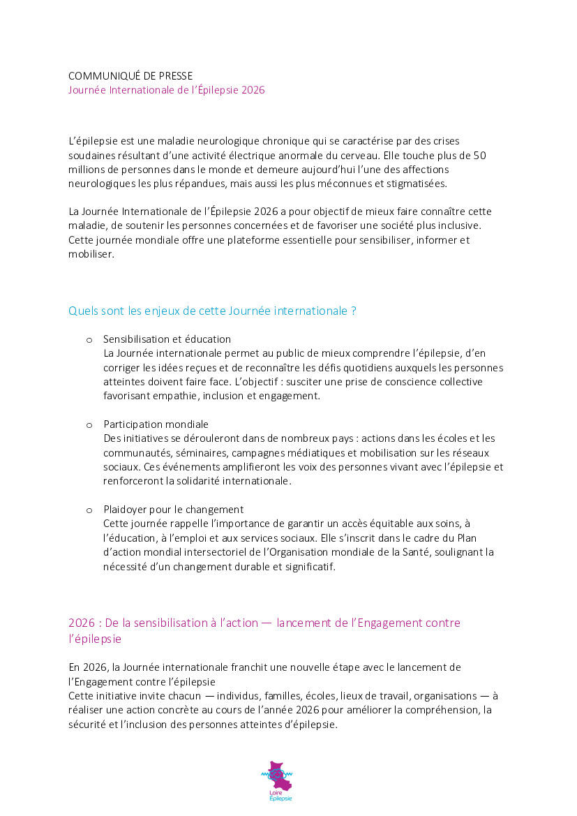 Journée Internationale De L'epilepsie 2026 - 09 Février