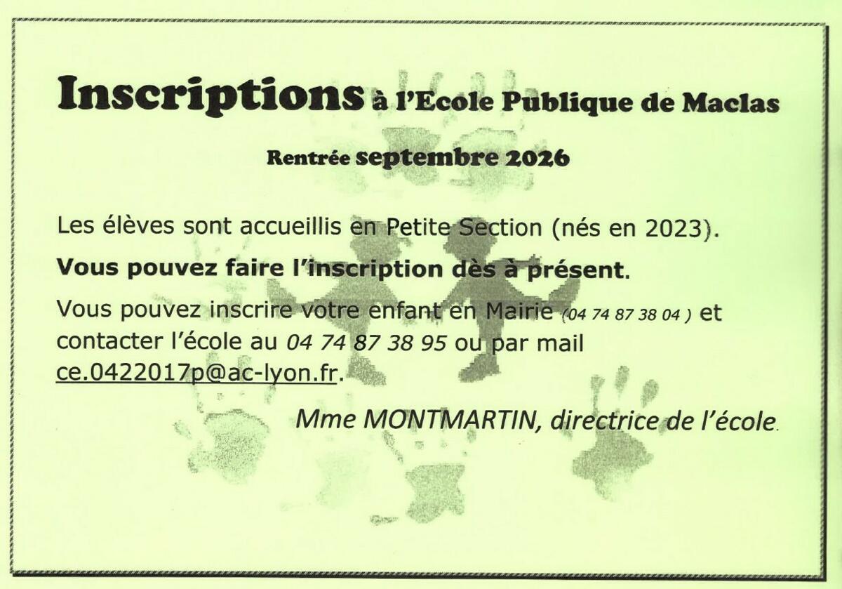 Inscriptions Ecole Publique - Rentrée Septembre 2026
