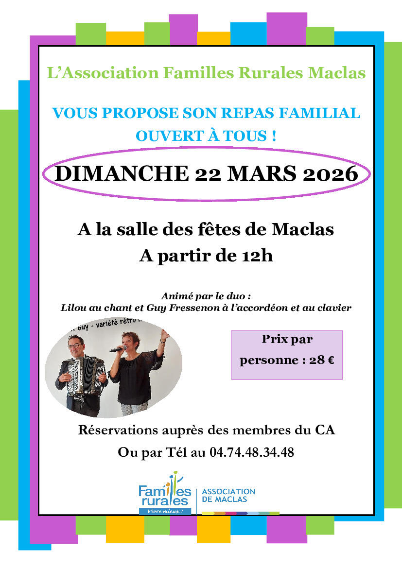 Votre mairie / Actualités / REPAS FAMILIAL - Association Familles Rurales Maclas