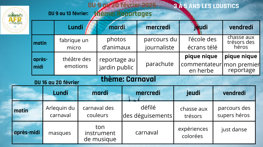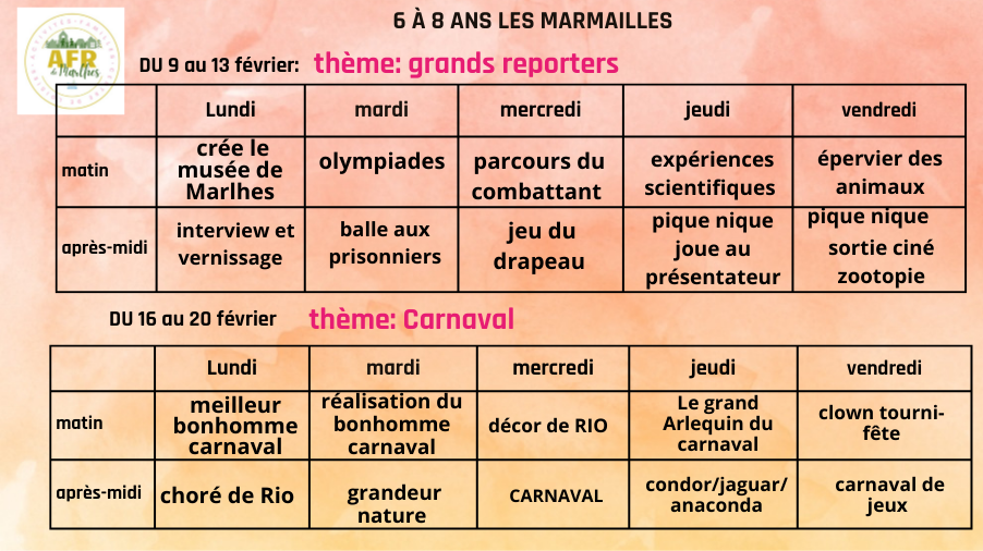 Centre de loisirs du petit bois 23/01/2026 Le programme des vacances de février est arrivé ! Source : Mairie de Marlhes