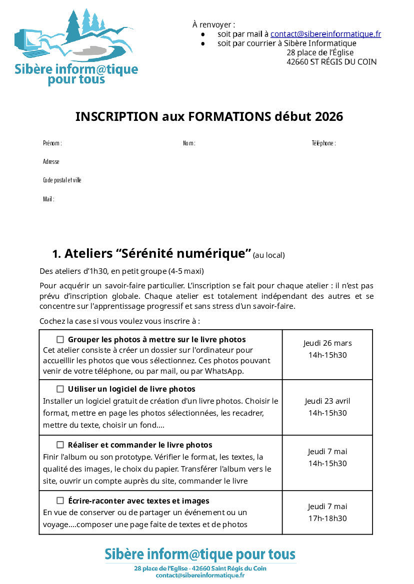 INSCRIPTIONS aux FORMATIONS début 2026