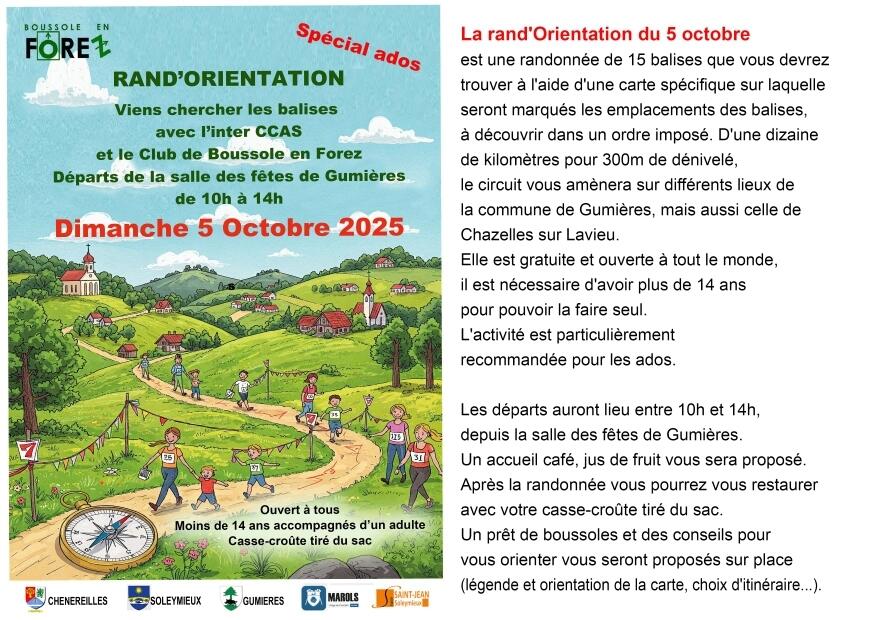 Les CCAS de Marols, Gumières, Soleymieux, Chenereilles et Saint Jean Soleymieux et la Boussole du Forez proposent à tous les ados du secteur une Rand'Orientation le
