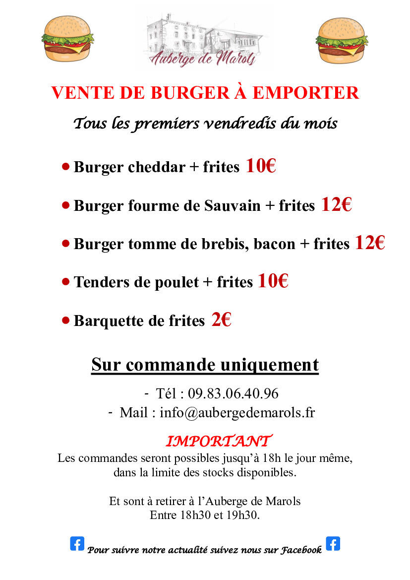 Vente de Burgers à l'Auberge de Marols 🍔🍟
