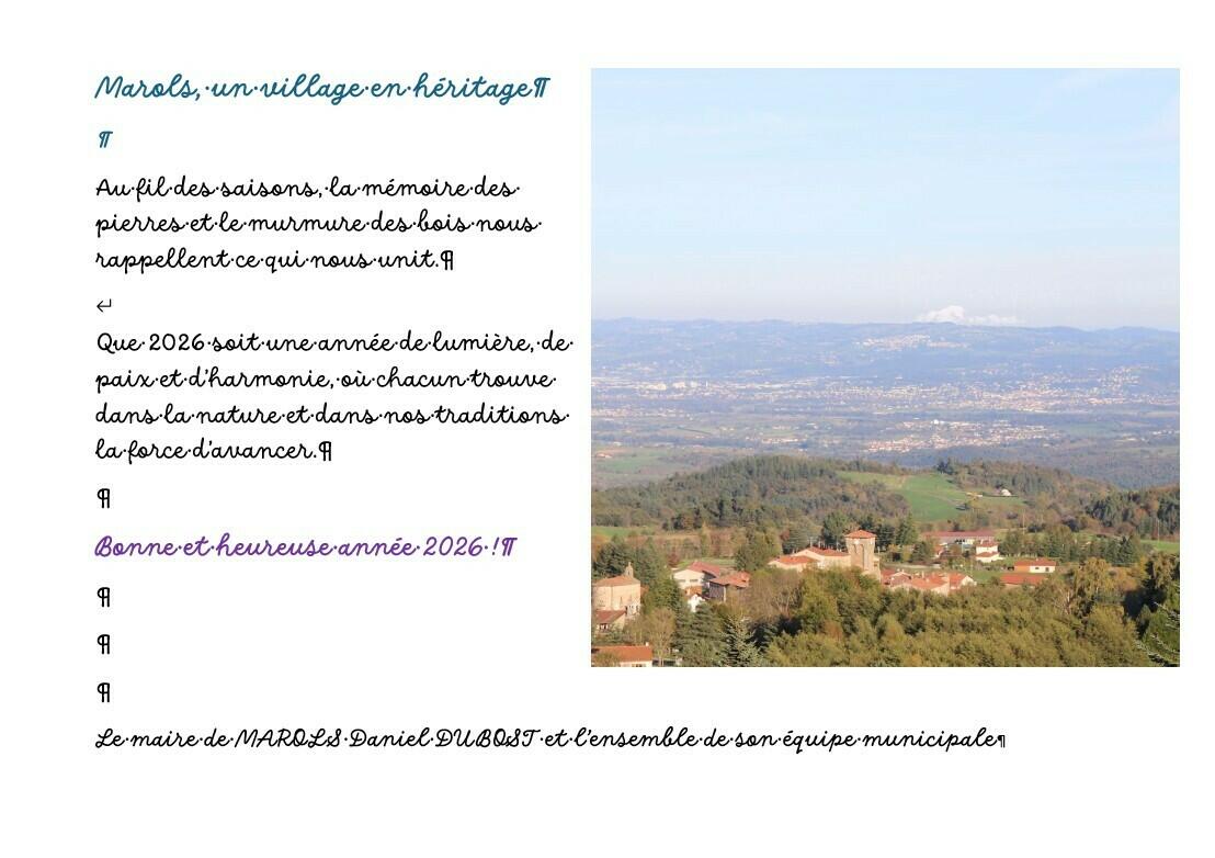 Monsieur le Maire de Marols et son conseil municipal vous convient à la cérémonie des voeux qui aura lieu le