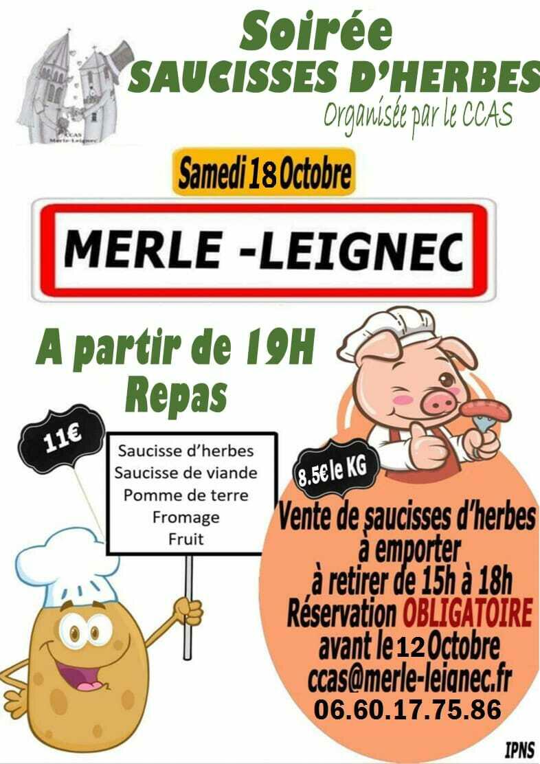 Soirée saucisses d'herbes à Merle le 18 octobre