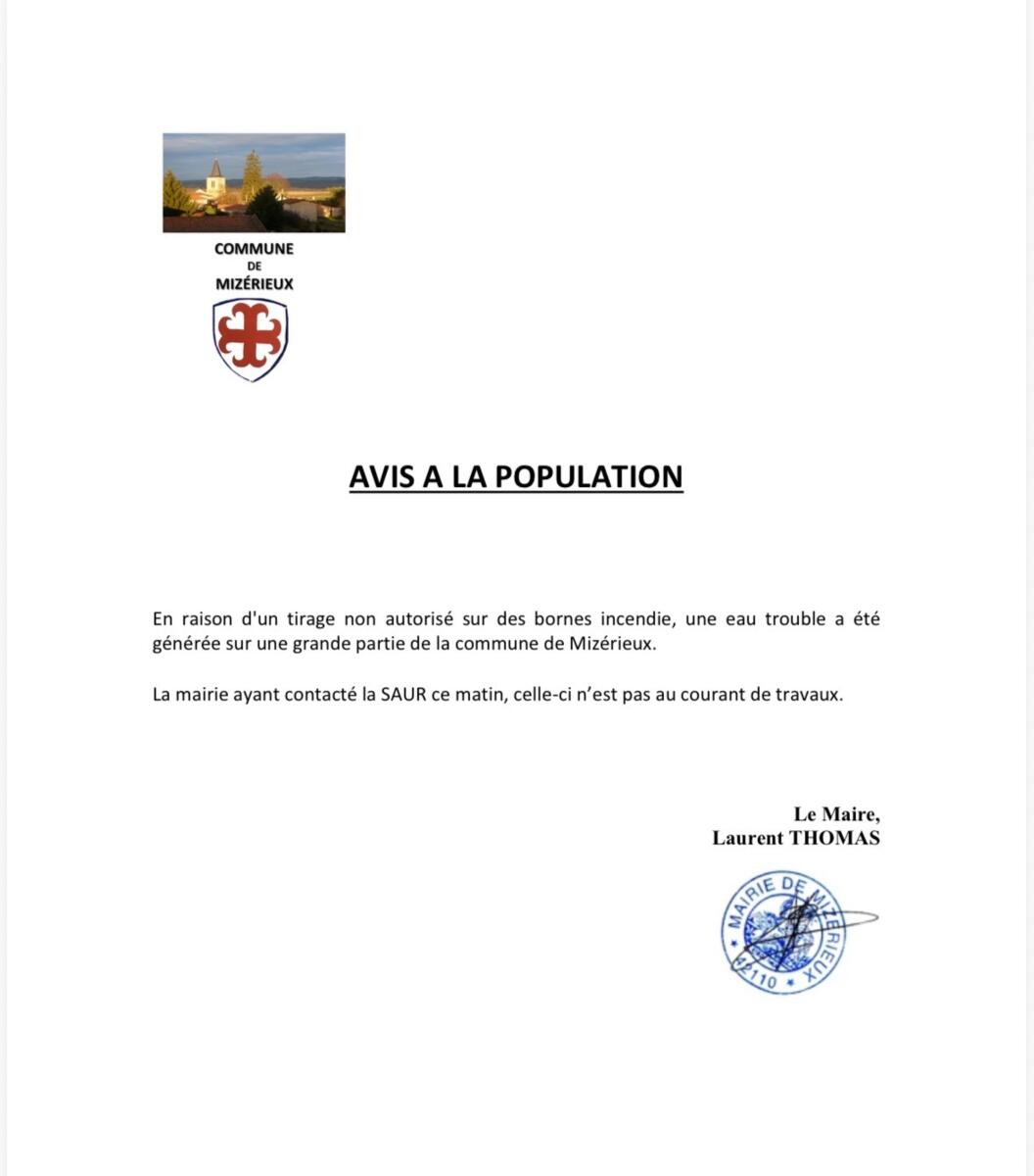 Message aux habitants de Mizérieux.