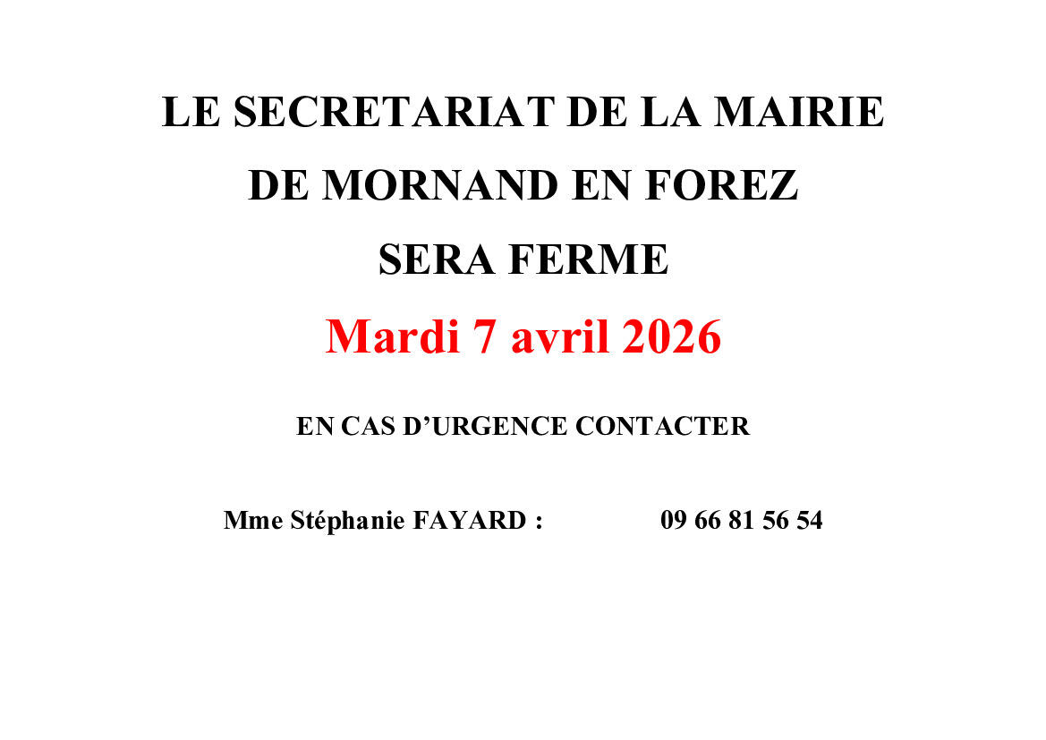 FERMETURE DU SECRETARIAT DE MAIRIE