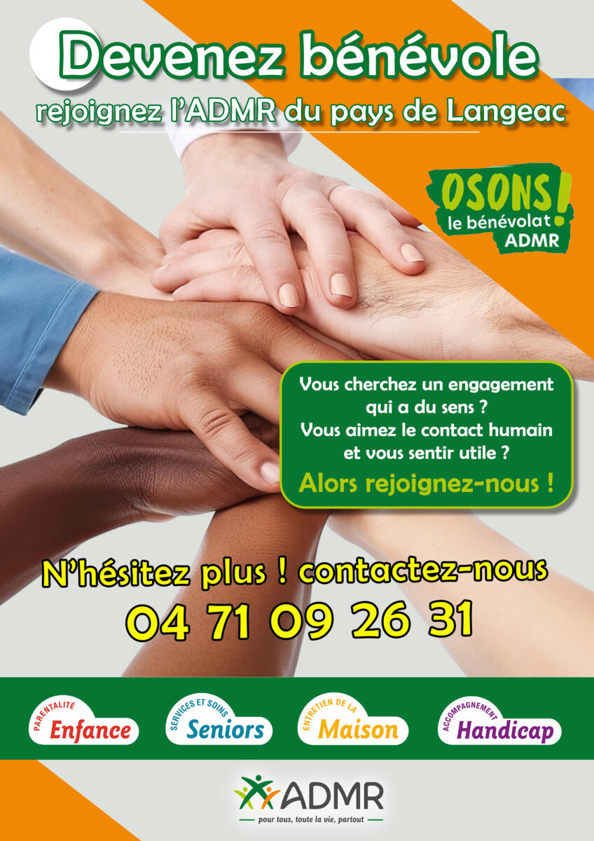 L'admr Recherche Des Bénévoles ! 20/05/2025 Afin de maintenir la qualité des interventions auprès des administrés, l'ADMR recherche des bénévoles pour étoffer ses équipes sur le secteur.