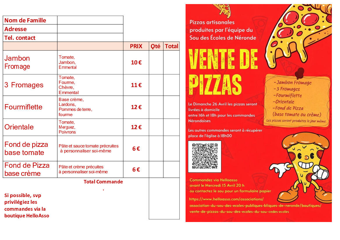 vente de pizzas le dimanche 26 avril 2026 qui nous régalera avec la complicité d'Edouard aux commandes.