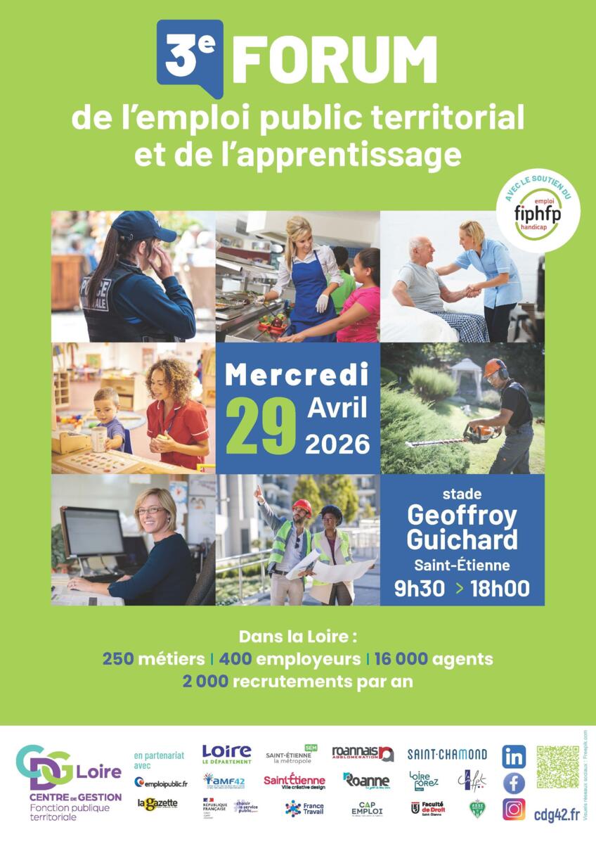 L’AMF42 (Association des Maires de France) vous informe de l’organisation du 3ème Forum de l’Emploi Public Territorial et de l’Apprentissage, une initiative du CDG42 (Centre de Gestion de la Loire) :