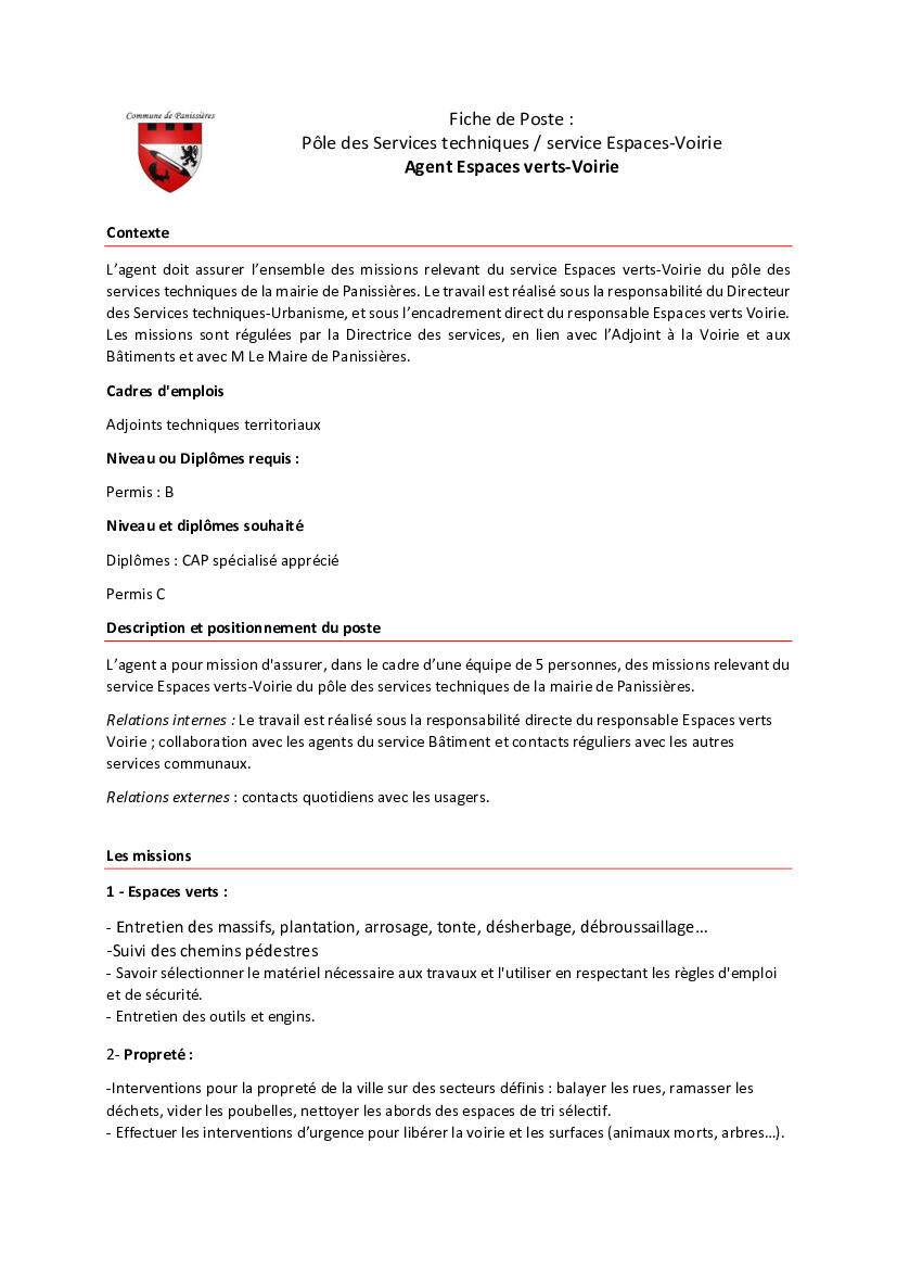 Pour postuler à cette offre envoyer votre CV par mail : mairie@panissieres.fr avant le 01/05/2026