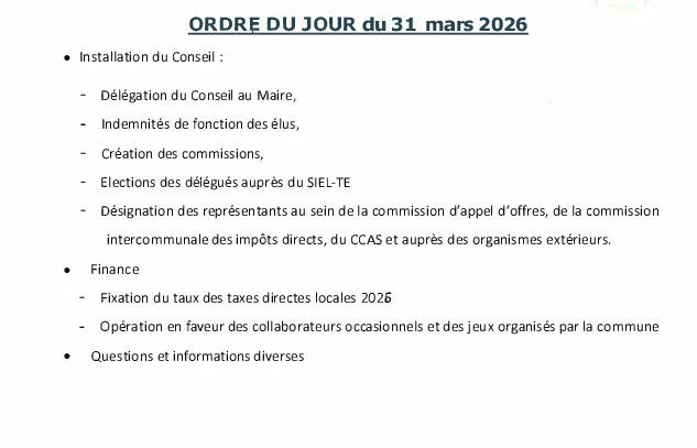 📢 La prochaine réunion du Conseil Municipal aura lieu mardi 31 mars 2026 à 20h en mairie, salle du Conseil.