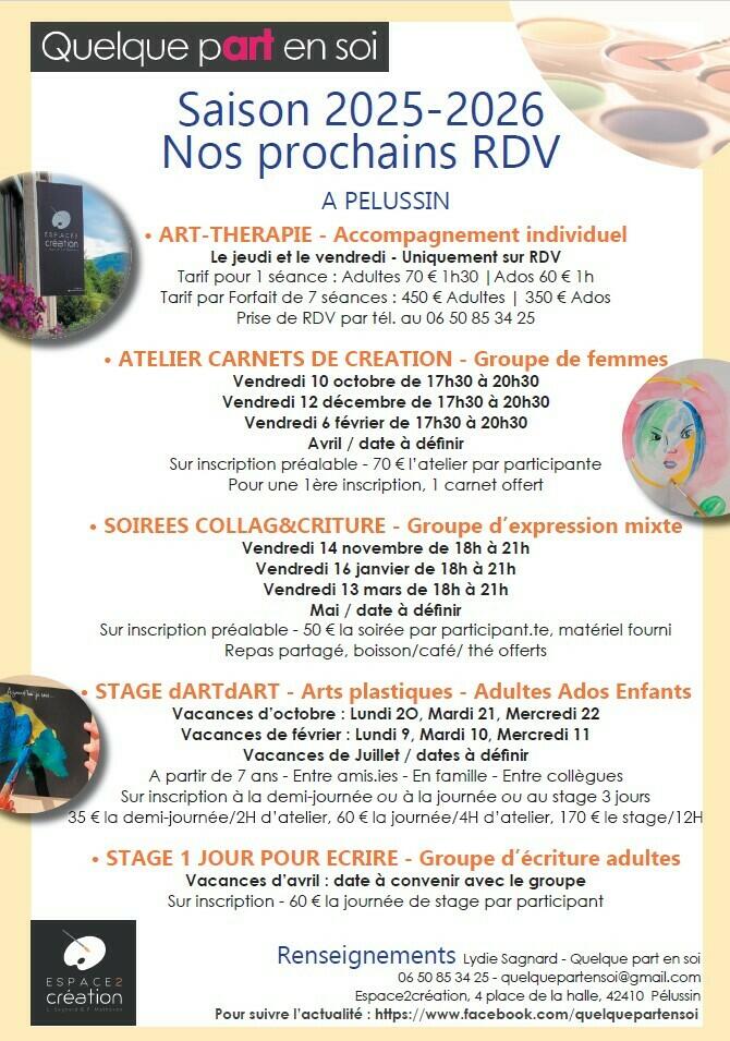 Renseignements et inscriptions : 06 50 85 34 25 / quelquepartensoi@gmail.com