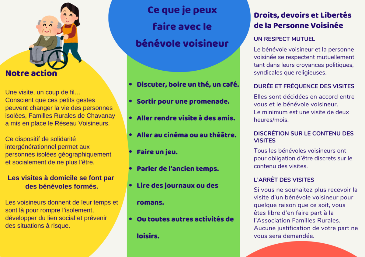 Des bénévoles tiendront un stand, et présenteront une de leurs actions en cours : Voisineurs/Voisinés.