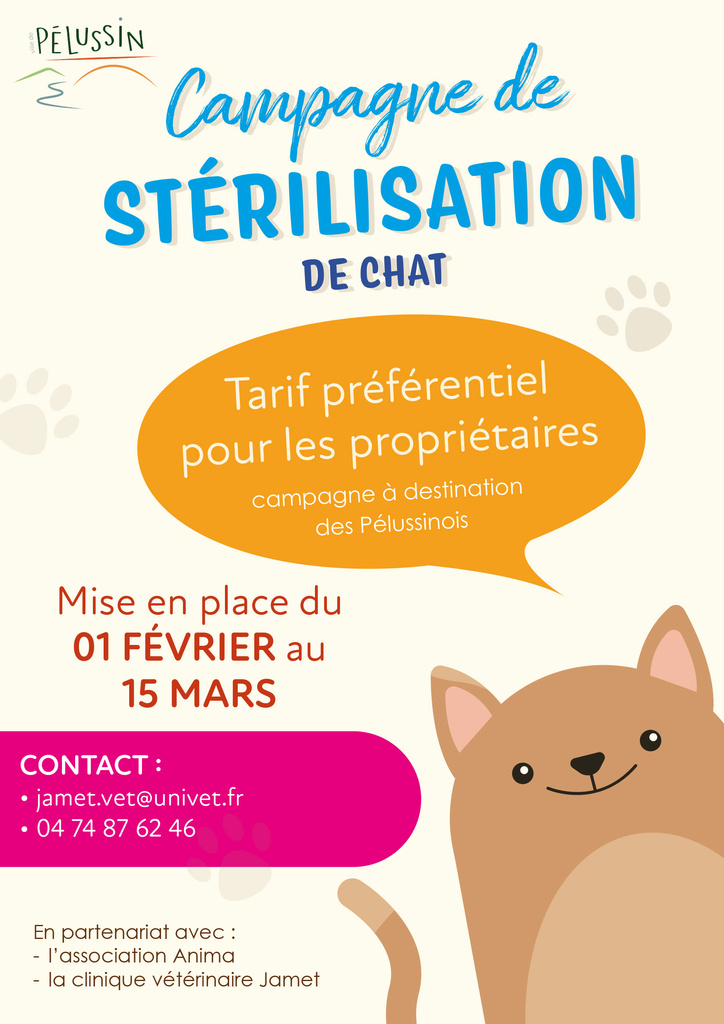 👉 Du 1er février au 15 mars 2026, tout habitant de Pélussin peut bénéficier de tarifs préférentiels en s’adressant directement à la clinique vétérinaire Jamet :