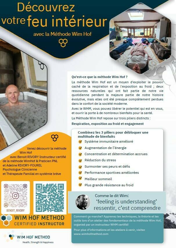 Sur inscription Contact et réservations : Scanner le QR code sur le flyer ou RDV sur le site https://www.wimhofmethod.com/instructors/benoit-rivory