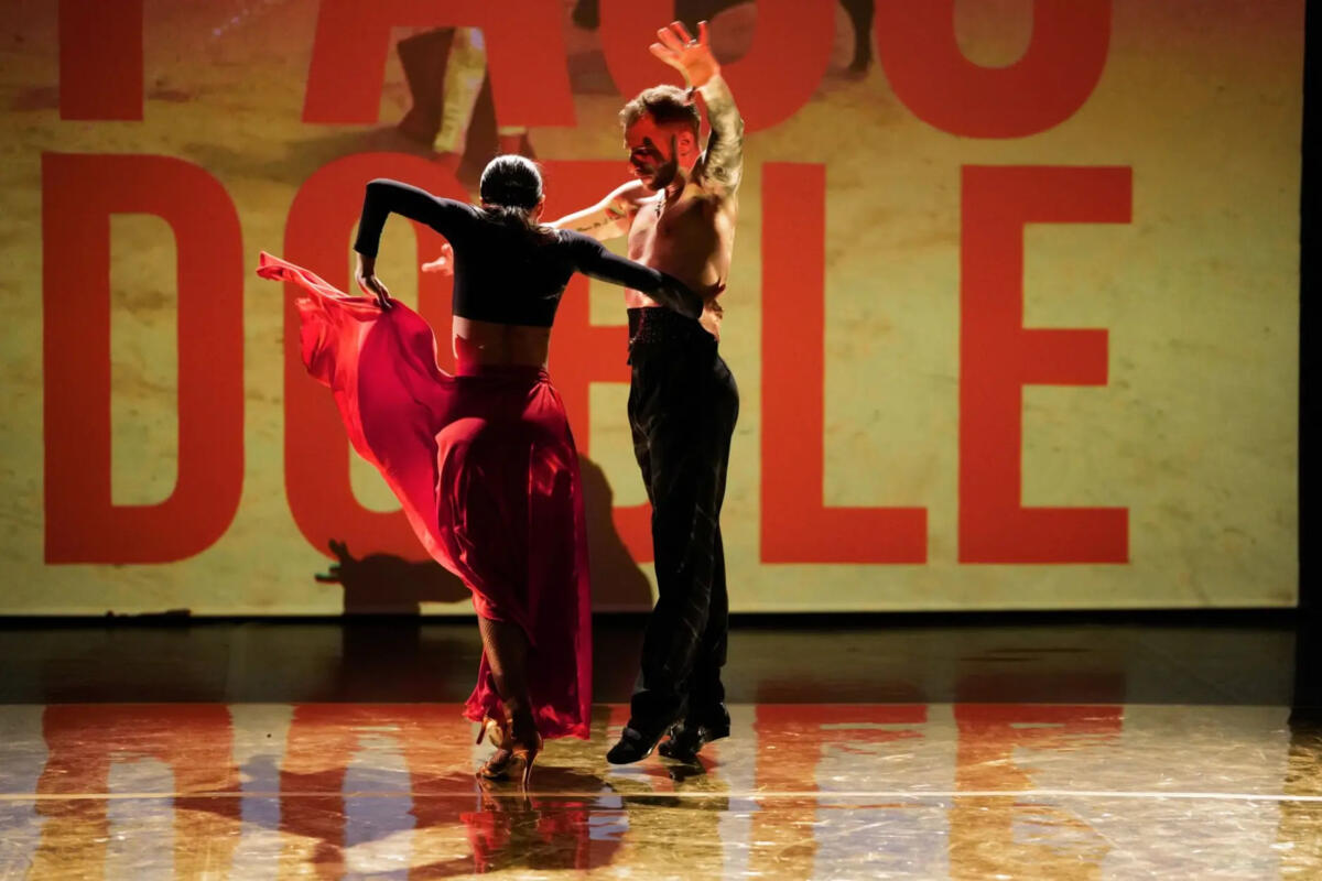 Ce spectacle documentaire qui mêle théâtre, danse et projection, est chapitré en dix moments aux titres entraînants : tango, paso doble, danse viennoise, valse…