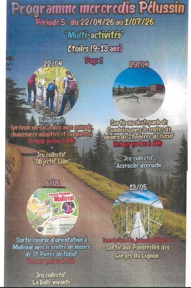 Contact & inscriptions : 04 74 56 89 32 / 07 49 06 19 15 / centresloisirpelussin@splpilatrhodanien.fr