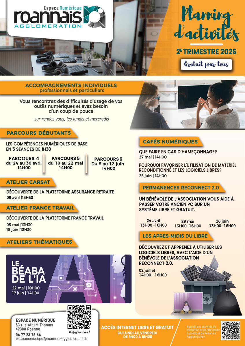 Roannais Agglomération vous propose le planning des activités du 2ème trimestre 2026