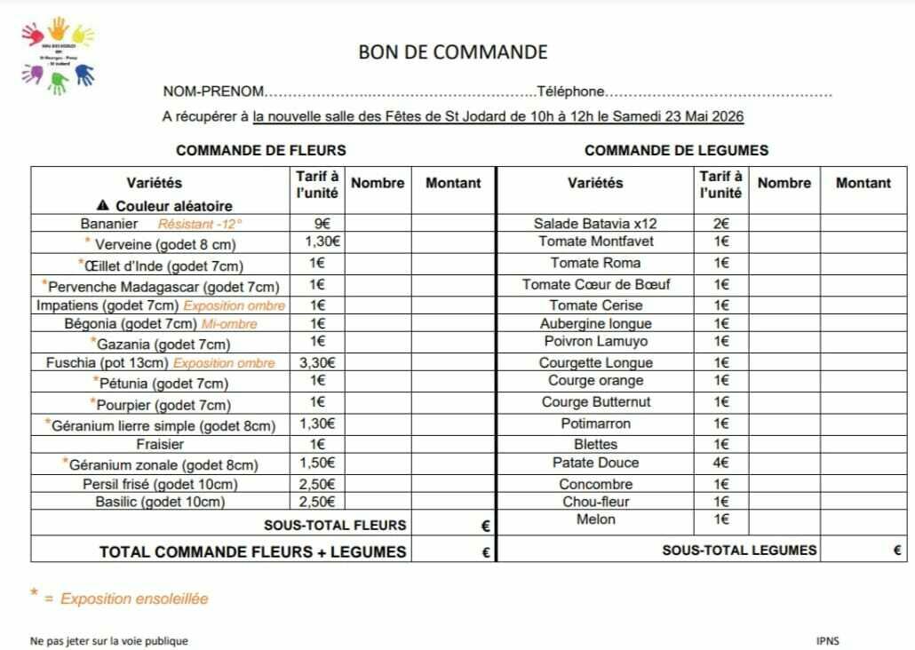 Votre mairie / Actualités / Vente plants Sou des écoles RPI