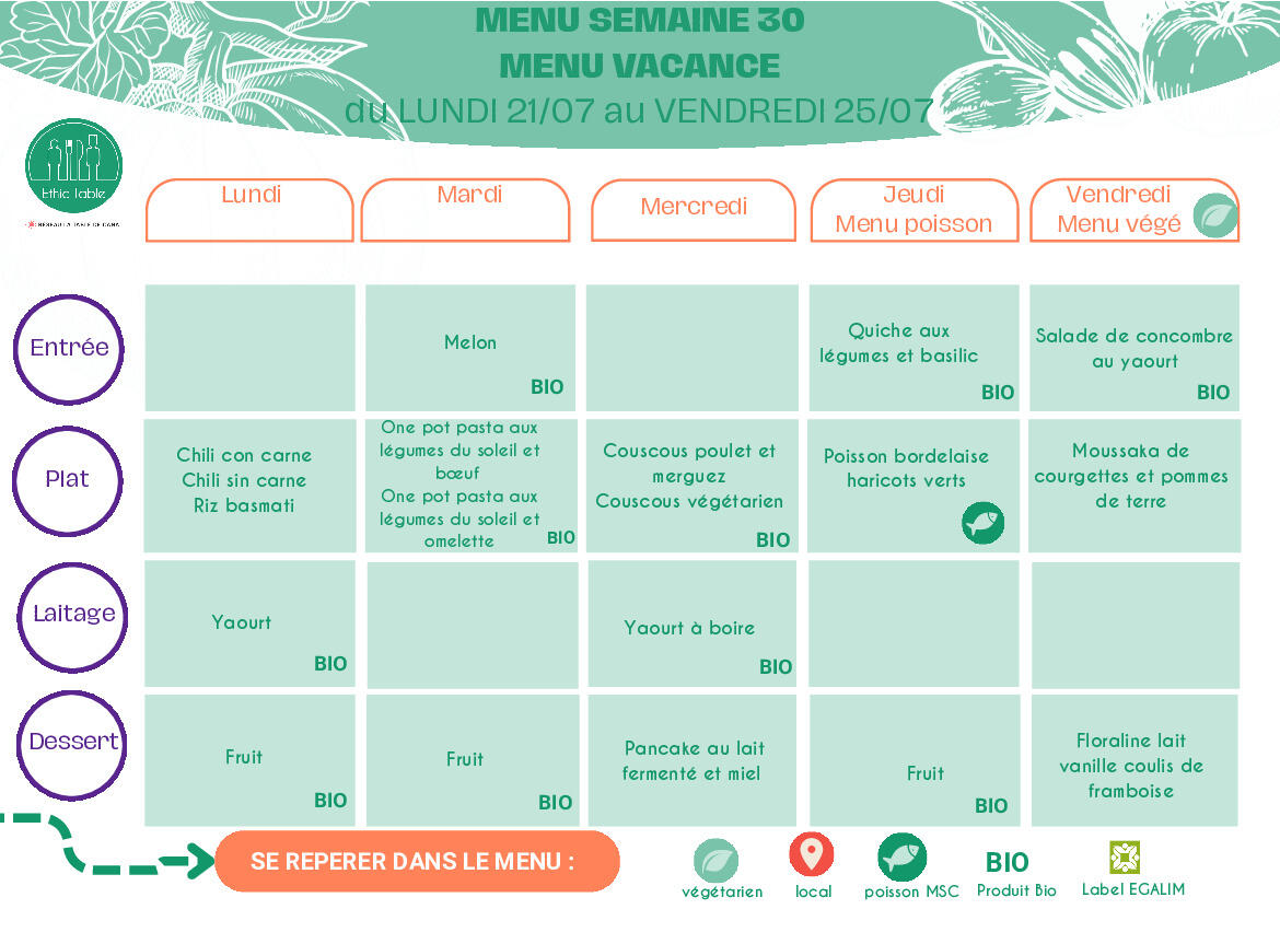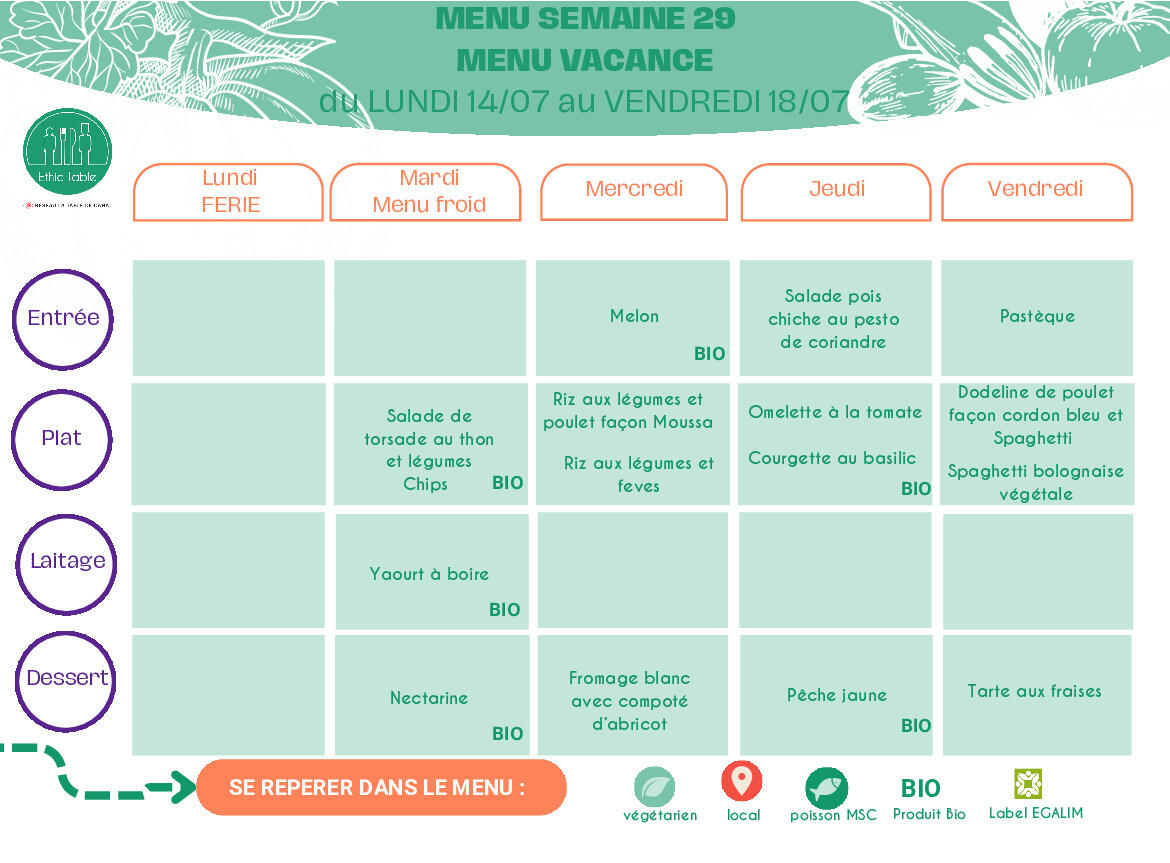 Menus cantine semaine 51