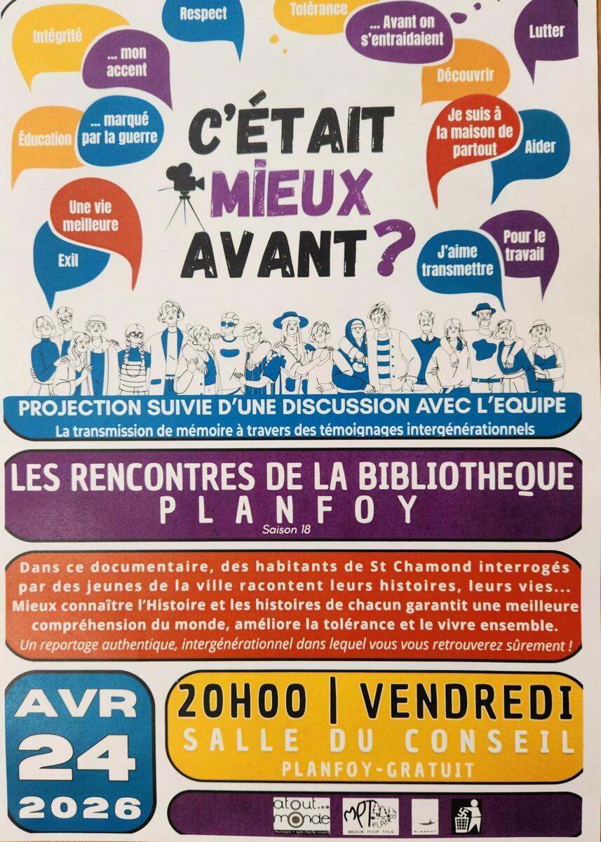 Prochaine rencontre de la Bibliothèque vendredi 24 avril à 20h salle du conseil