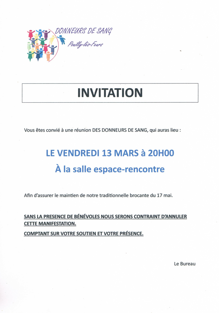 / Réunion des Donneurs de sang - Appel aux bénévoles - 13 mars